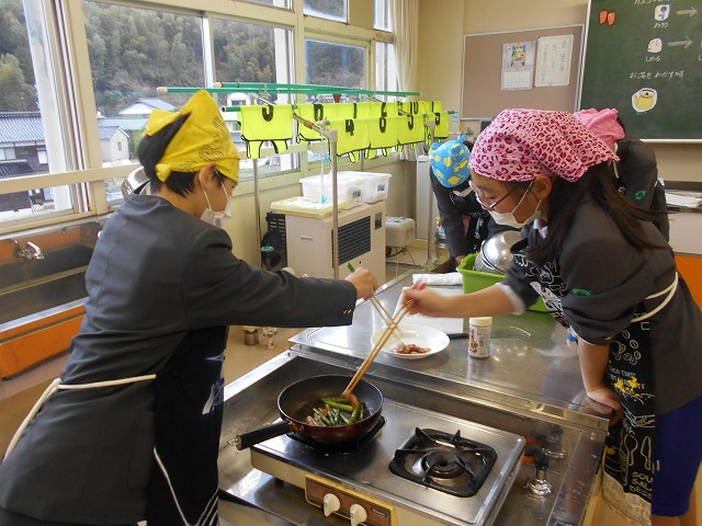 6年生が家庭科の調理実習をしました。2チームに分かれてしました。