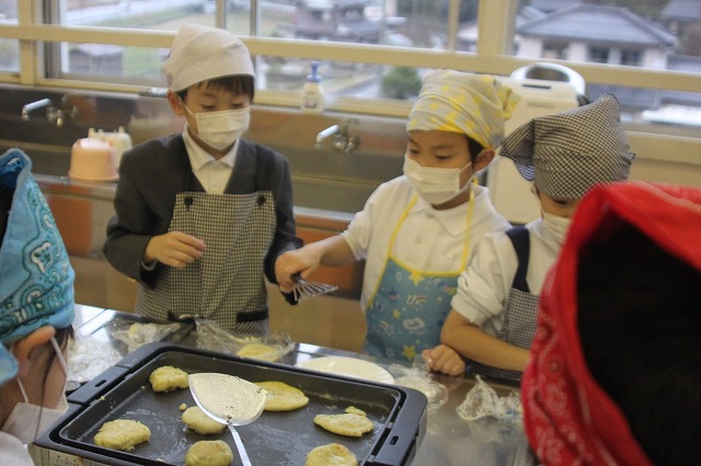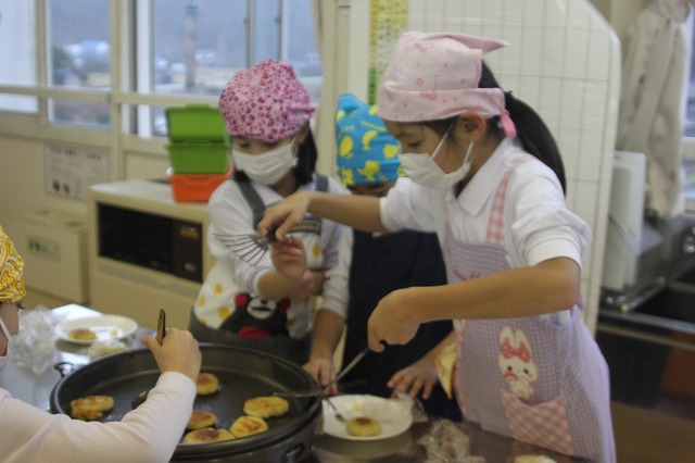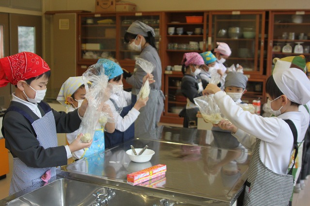 1・2年生は、春に植えて、秋に収穫したサツマイモを使っておやきを作りました。