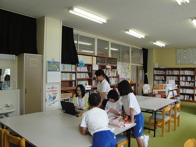 昼休みは、図書貸し出しの時間です。特に毎週金曜日の昼休みは、週末読書に向けての貸出時間になります。