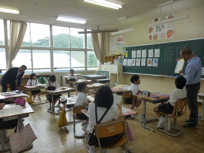 今日は指導主事の先生方や他の学校の先生方が河原田小学校の授業を参観しにおいでました。