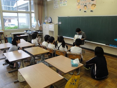 6月の読み聞かせがありました。3人のボランティアさんが、雨の中いらしてくださいました。