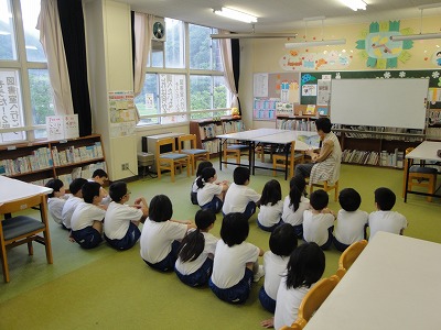 低学年には「おんちょろちょろ」「おおきくなったらなにになる?」、中学年には「おもいついたらそのときに」、高学年には「世界一の石の塔」を読んでいただきました。