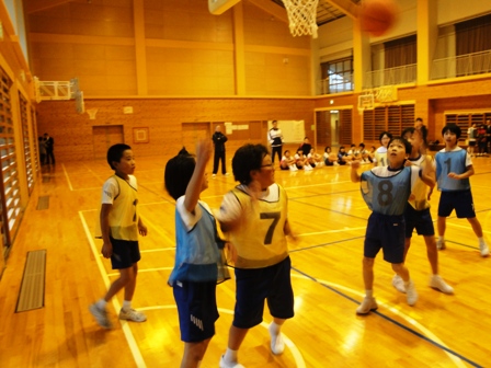 11月1日(火)、5・6年生が鵠巣小学校の体育館で鵠巣小・三井小・河原田小の三校合同ミニバスケットボール交換会に参加してきました。