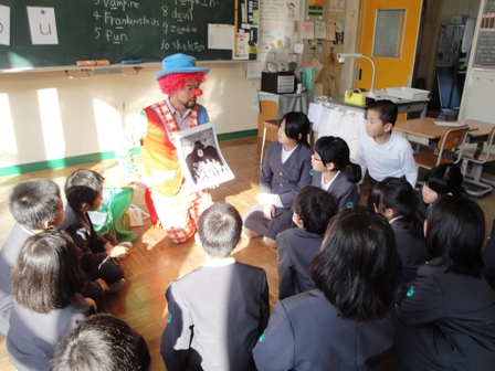 11月5日(土)の土曜授業で、外部講師の栗林先生(アメリカ居住経験あり)が、外国語活動の中で「ハロウィン」についてのお話をしてくださいました。
