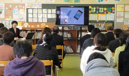 午後からの講演会では、穴水町ICT支援員の堀井さんが「インターネットに潜む危険性から子供たちを守ろう」というお話を保護者の皆さんにしてくださいました。