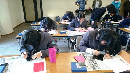11月25日(金) 河原田、鵠巣、三井、南志見、町野の6年生全員が輪島漆芸美術館に集まり、沈金パネルの制作に取り組んできました。