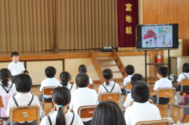 夏休み明けの全校集会では、毎年、夏休みの体験について発表しています。