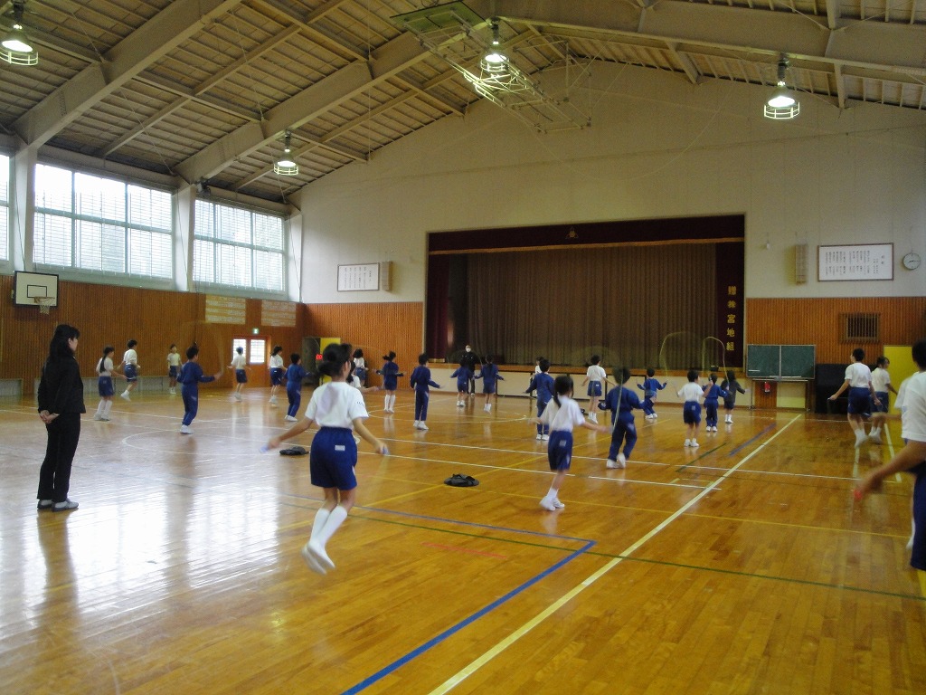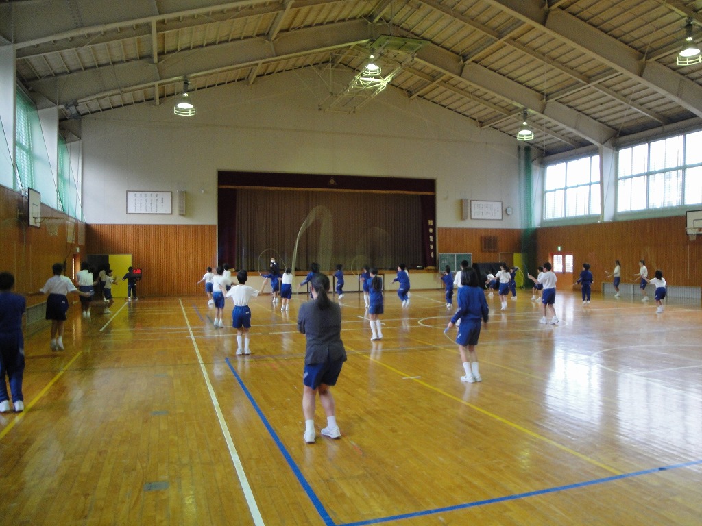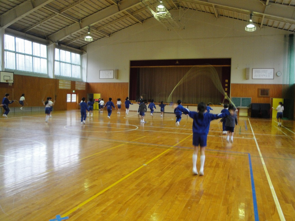 冬場の体力アップとして取り組んでいる縄跳びの持久跳び。
