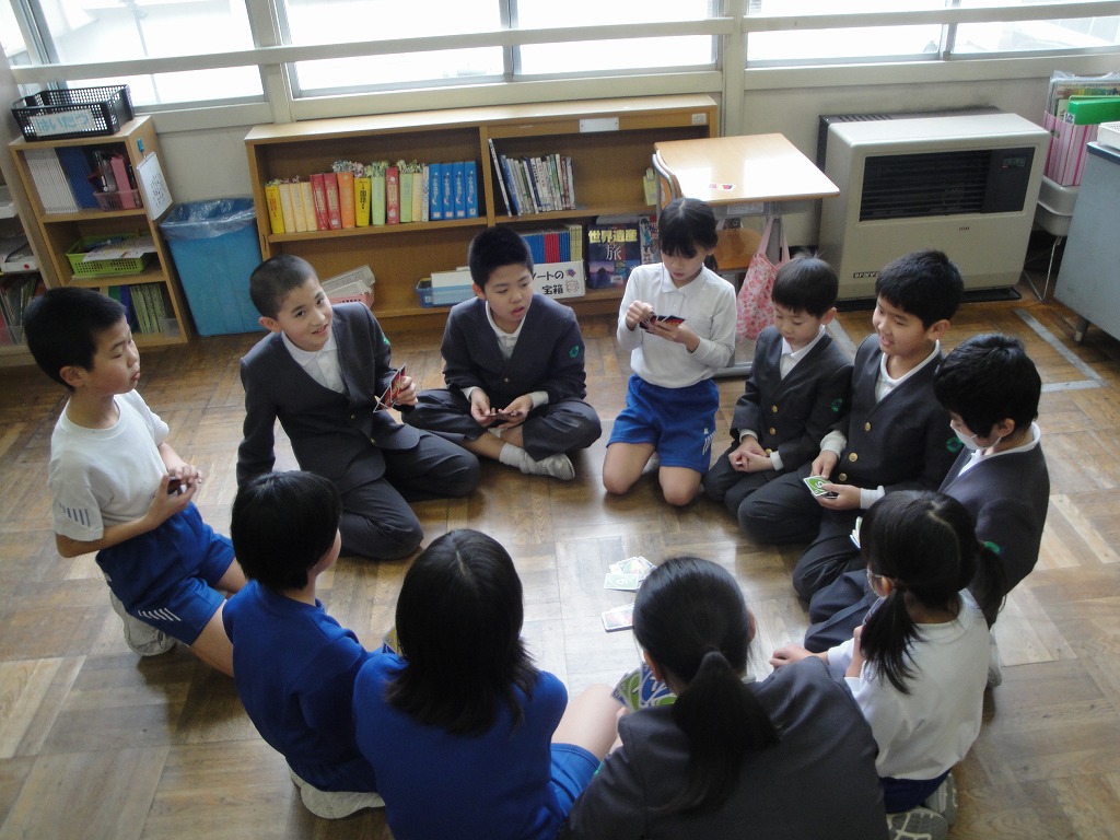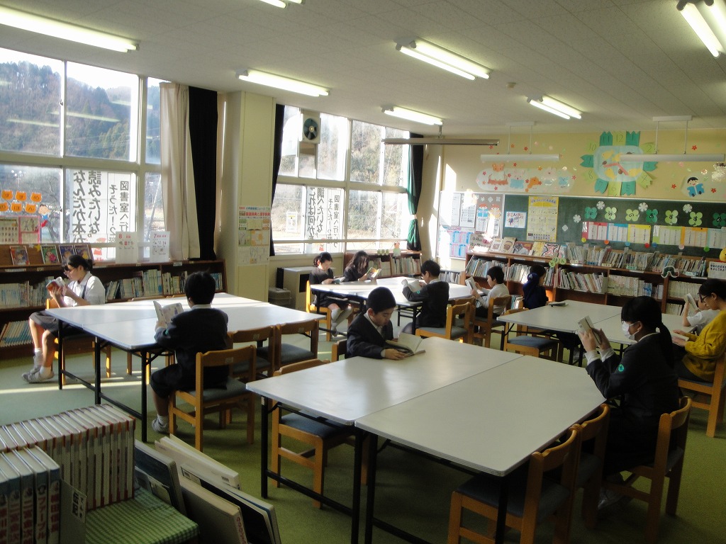 縦割り班青組の1~6年生が図書室に集まって読書をしました。