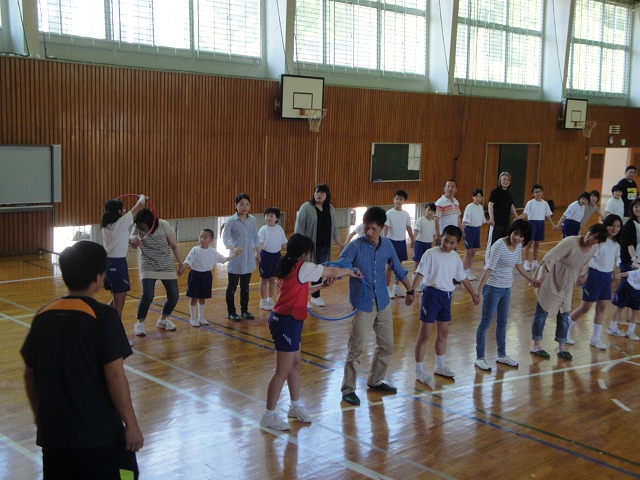 今日の種目は「シャトルボール」。特に3・4年生が頑張っていました。