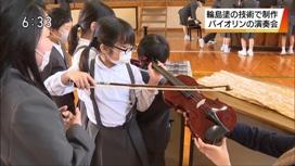 輪島塗の技術をいかして作られたバイオリンの演奏会が,19日,輪島市の小学校で開かれました。演奏会が開かれたのは輪島市の河原田小学校で,体育館には,全校児童や地元の人たちおよそ40人が集まりました。はじめに,バイオリンを制作した,学校近くにある工房の代表の八井汎親さんが,漆塗りのバイオリンは芸術性が高く評価され,アメリカのボストン美術館にも収蔵されていることなどを紹介しました。続いて,金沢市を拠点に活動するバイオリニストの谷口絵美さんが,漆塗りのバイオリンと一般的なバイオリンで,アニメ映画の曲や童謡など7曲を演奏しました。谷口さんによりますと,漆塗りのバイオリンはしっとりとした音色が特徴だということで,集まった人たちは,演奏が終わると大きな拍手をおくっていました。3年生の女子児童は「漆塗りのバイオリンは装飾が施されていて,きれいだと思いました。コンサートも,私の好きな曲が演奏されて楽しかったです」と話していました。