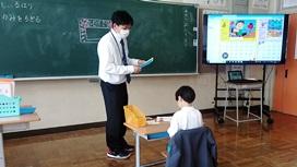 1年生3名が入学してはや半月。もうすっかり学校生活にも慣れ,立派な河原田小学校の一員です。そんなこの日,1年生を迎える会が行われました。歓迎の歌「さんぽ」の後,5・6年生が,得意にしている「8の字跳び」を披露してくれました。3分で300回を目標に跳びました。途中何度か引っかかり,もうダメかと思われた後半を一度も失敗することなく乗り切り,なんと301回跳んだのです。素晴らしかったです。次の3・4年生は,「ありとすいか」と「ようかいでんしゃ」の読み聞かせを披露してくれました。豊穣人物になりきった話し方は,とても上手でした。1年たちは,3~6年生の発表から,自分たちの目標を決めたようでした。その後,1年生へのインタビュー,ゲーム「どうぶつあてゲーム」と「しっぽ取り」と続き,楽しかった1年生を迎える会は終わりました。