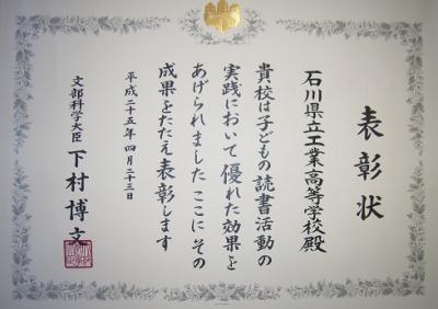 平成25年度 読書活動の文部科学大臣表彰