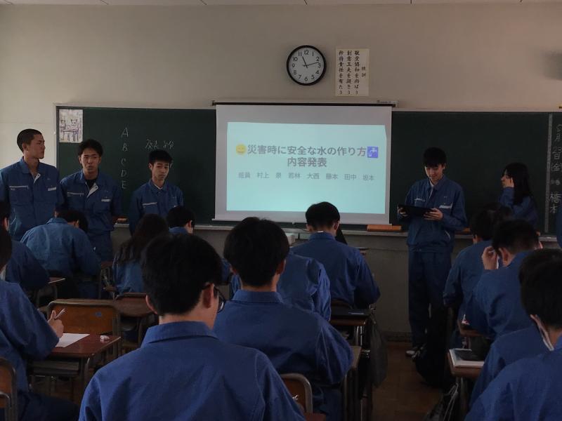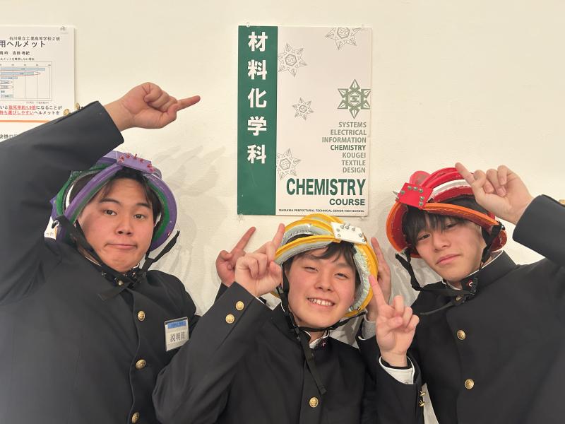 1月17日(金)5限の時間に材料化学科で課題研究発表会を行いました。3年生は1年間この日に向けて研究を行ってきました。どの班のスライドを見ても、人の五感で考察しているのではなく、しっかりとデータを取り(「数値化」)、考察してあり、どの班もオリジナリティがあり、また質疑応答にも一生懸命答えていました。どの班も優秀だったのですが、科代表に「持ち運びしやすい折りたたみ式自転車ヘルメット」の班が選ばれました。材料化学科1年生、2年生も3年生になれば課題研究がありますので、課題研究を行う上で1番難しいテーマをどうするかをしっかりと考えておいてくださいね。