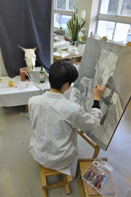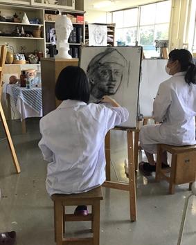 造形コースでは、美術・工芸・デザイン系の大学進学を目標にしたデッサンや絵画・立体彫刻・色彩構成などの作品制作を通じて造形の基礎や表現技法を学習します。