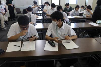 ↑テレビ部門の講習会に参加する生徒の様子(携帯の画面を見ているのは、撮影のためです)