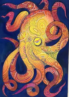 今回は3年中津川ひよりさんの作品「THREE」と、源のぞみさんの作品「Octopus」が佳作に入りました!