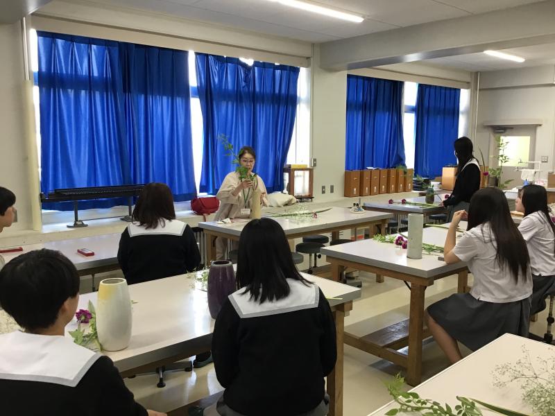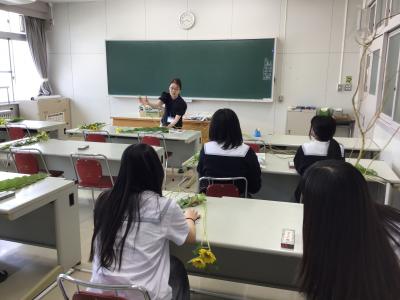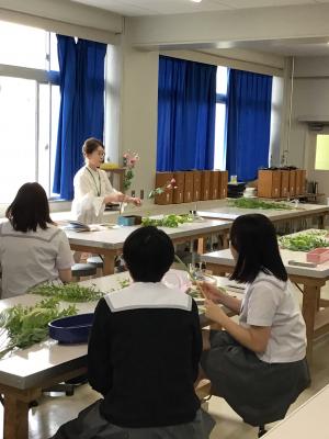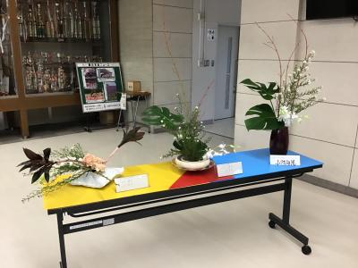 県工祭で玄関にお出迎え生け花を展示! 高校生活に華を!! |