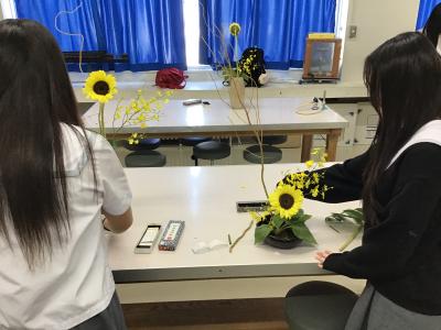 3年生は、今日が最後の活動日でした。1、2年生は、3年生をイメージしながら思い思いにお花を生けました。