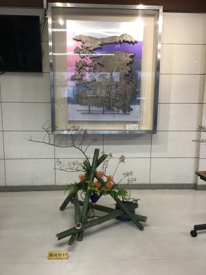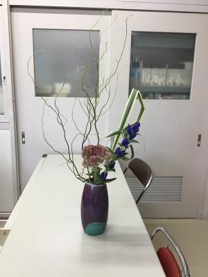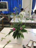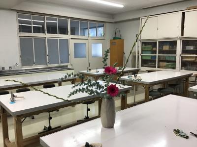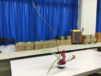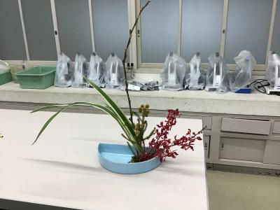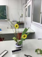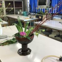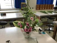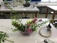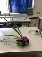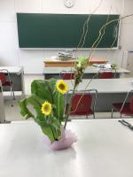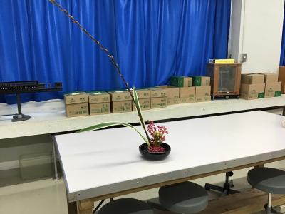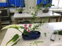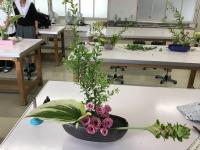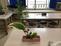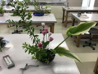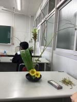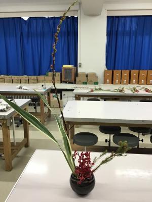 県工祭の前日に、共同作品を中心に生けました。クラス準備と並行しながら進めることになり慌ただしい中での作業でしたが、皆で協力しながら取り組むことができました。