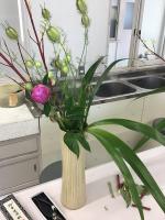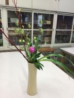 花材を奇数になるように準備し、長さのバランス、重さのバランス、全体のバランスを考えながら生けました。
