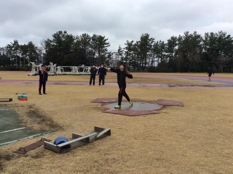日本陸連U-19強化研修会、練習会が12月25日(土)西部緑地公園陸上競技場で行われました。当初2日間の予定でしたが荒天が予想されたため1日練習に変更して実施されました。生徒の安全を第1に考えれば適切な判断だったと思います。本校から参加した男子、嶋倉秀斗(1SA)女子、深沢千夏(2T)池田夢花(2T)平下姫菜(1T)計4名は練習会の趣旨である競技に対する知識と理解を深めながら種目に応じた技術指導の中、競技力の向上を目指して意欲的に参加することができました。この経験を冬季トレーニング、来シーズンに向けて必ずや生かし自身の競技力を更に伸ばせるように精進してほしいと思っています。この練習会は中学生も参加しましたが先輩が良い手本となり基本的な生活習慣の確立と選手相互の友情を培う事、練習に対する姿勢等も伝授できるなど有意義な練習会だったと思います。参加した選手の皆さん、雪の中大変御苦労様でした。