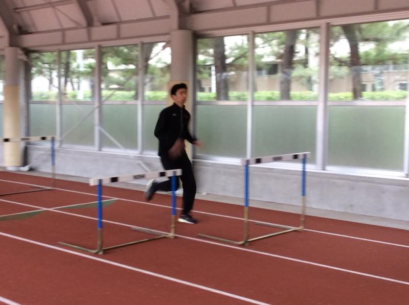 【男子競歩の嶋倉秀斗君 コーチから腕振りを指摘され修正に余念がありません。来年の目標は大きくインターハイ出場です】