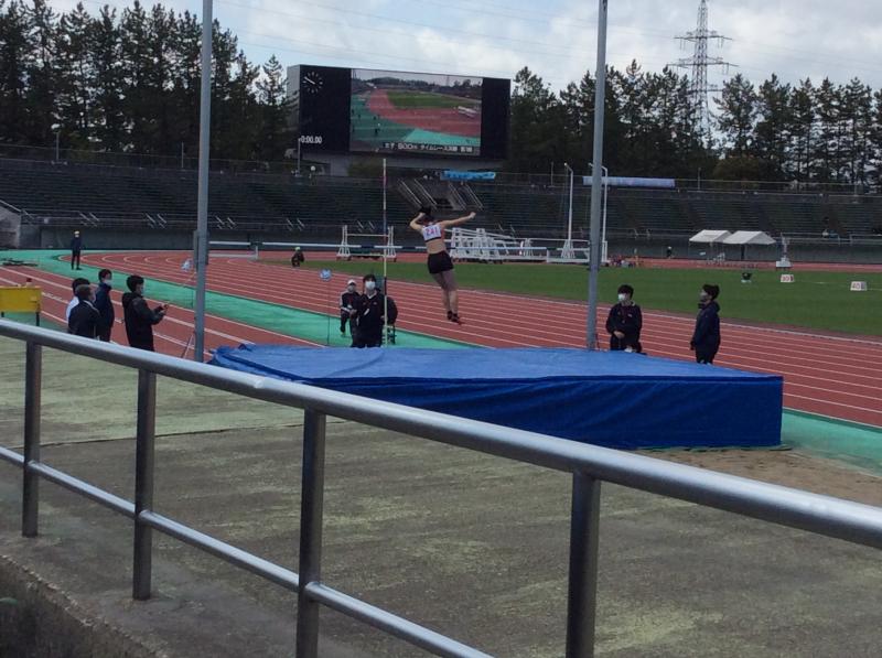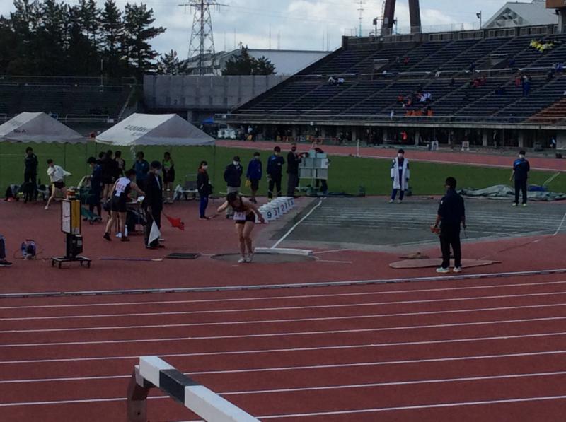 10月23日(金)~25日(日)まで第25回北信越新人陸上競技大会が福井県営9.98スタジアムで行われました。石川県高校新人で3位内に入賞した3選手2SAの笹山葵衣2年 棒高跳 2Dの亀田聡美2年 三段跳 1Tの深沢千夏1年 砲丸投が出場しました。2日間は雨でコンディション作りに気を使いましたが何とか無事に大会を終える事ができて良かったと思います。コロナ過の大会と言うこともあり感染予防に気を使うなど非常に重苦しい雰囲気の中での大会でしたが大会関係者のご尽力のおかげで何とか無事に終える事ができ安心しています。関係者の皆様本当にありがとうございました。
