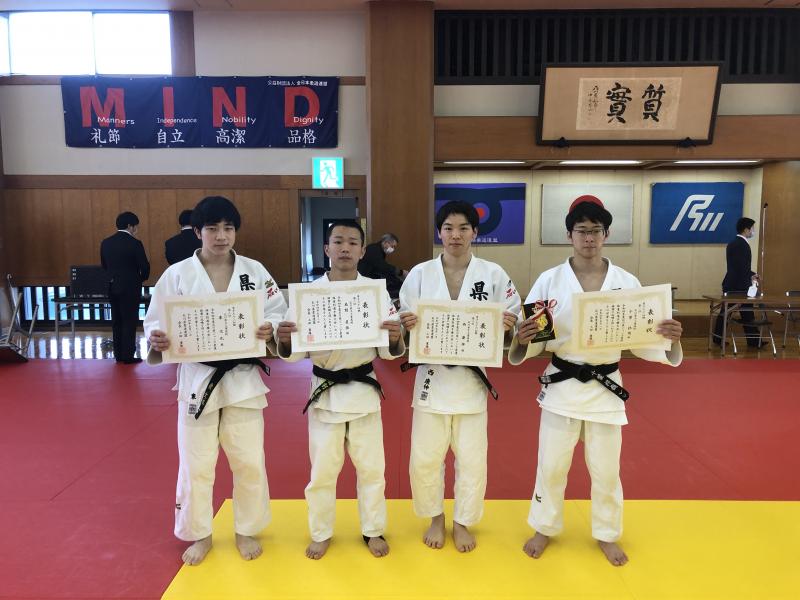 非常に厳しい戦いが予想される中、1試合目の対福井県では先の北信越大会60kg級を制した相手に対し、合わせ技で一本勝ちをおさめチームに勢いをつけ勝利、続く2試合目の対新潟県でも一本勝、3試合目の対長野県では、先の北信越大会で一本負けした相手に臆することなく優勢勝ち(技有り)をおさめ、チームの勝利に貢献、最終4試合目の対富山県には優勢負け(技有り)となりましたが、チームは3勝1分で優勝し、本国体への出場が決まりました。県立工業高校(1名)、鶴来高校(3名)、津幡高校(1名)の選抜チームですが、チームワークは他のどの県よりも優れていました。