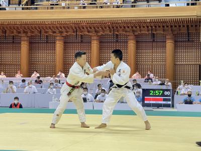 1回戦は静岡県代表選手に僅差(指導2)で勝利しましたが、続く2回戦で今大会準優勝した福岡県代表選手に優勢(技有)で敗れ3回戦に進出することが出来ませんでした。ただ、全力を出し切った悔いの残らない試合となりました。