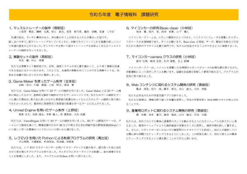 令和5年度県工展において、電子情報科「課題研究」の学習成果を展示しました。 |