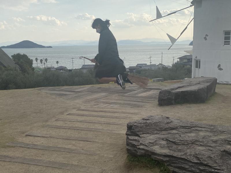 オリーブ園では実写版魔女の宅急便のロケ場所ということで、生徒は箒に乗る写真を撮るのに一生懸命になっていました。