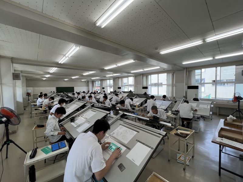 機械システム科では、毎年7月に機械製図検定を受験しています。今年も真夏の暑い中、集中して取り組んでいました。