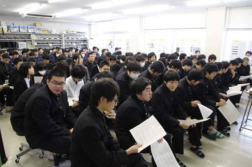 説明会が、機械システム科2年生生徒(2クラス)を対象に実施されました。