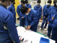 午後の技術開発センターでは、電気工事施工の技術を学んできました。実際に金属管を曲げたり、電線の接続部分(輪づくり)の練習をしたりなど、プロの方から丁寧に技術を教えていただき、生徒達からは「輪づくりが速くなった」「学校でも早く練習したい」といった言葉を聞くことができました。北陸電気工事株式会社の皆さん、本当にありがとうございました。