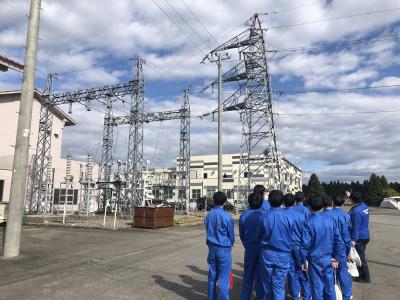 令和4年11月16日(水)に一日かけて、富山県の北陸電気工事株式会社の能力開発センターと技術開発センターへ企業見学に行ってきました。午前の能力開発センターでは、安全体感実習を受けてきました。脚立・はしご落下体感や高圧短絡体感、VR体感など、様々な危険を体感してきました。また、新人研修の宿泊設備や実習設備の見学もでき、有意義な時間を過ごすことができました。昼食は、社内食堂でカレーライスを頂き、生徒達も喜んでいました。