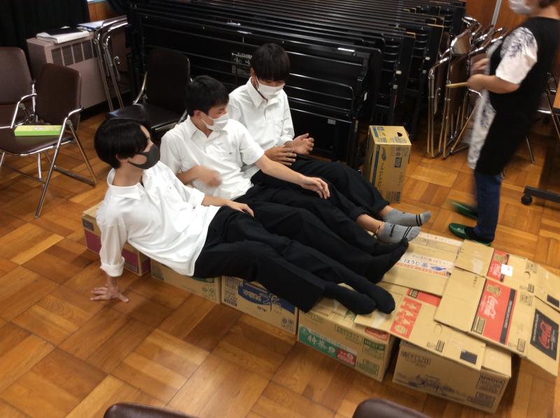 段ボールベットは強度があり、生徒が三人乗っても大丈夫でした。
