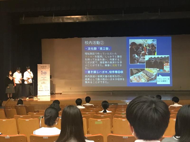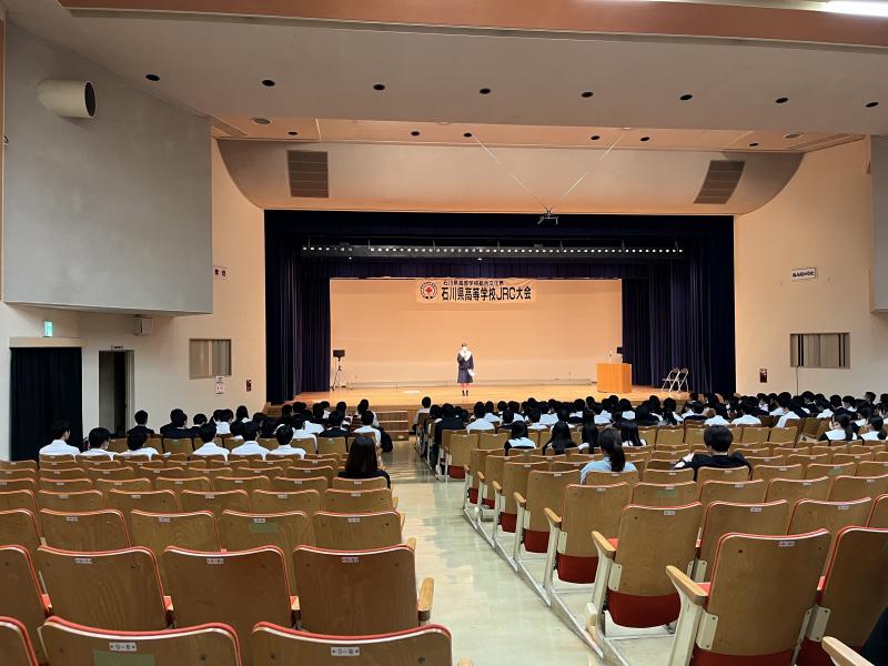 令和4年6月3日(金)に、いしかわ子ども交流センターで行われたJRC大会に参加しました。部長を中心にchromebookのプレゼンテーションソフトウエアを使って資料を作り、これまでのボランティア活動の発表を行いました。3年生は、この活動をもって引退となりました。