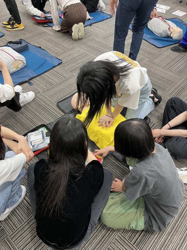 5月27日(土)に石川県赤十字血液センターで、第72回「金沢百万石まつり」救護ボランティア事前研修会に参加しました。コミュニケーションワークショップのあと、救護活動についての講義を受け、BLS(一次救命処置)の実技をしました。救急の知識や技術の習得ができ、有意義な時間でした。