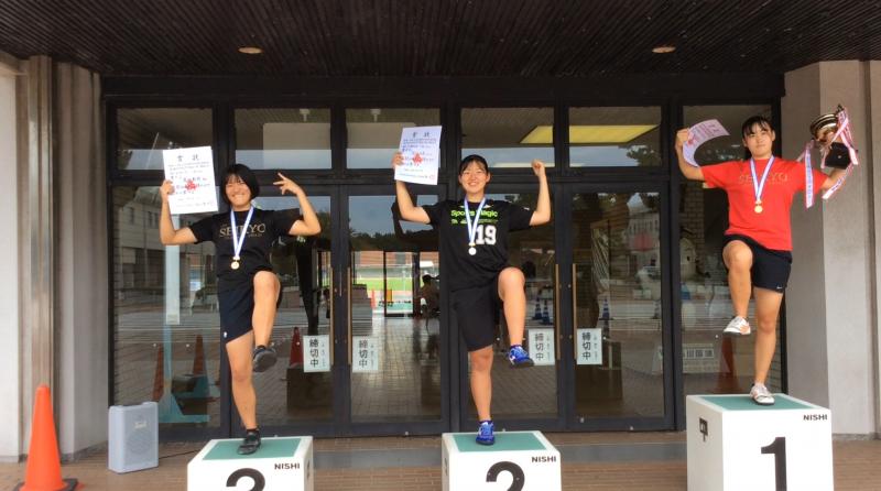 [女子砲丸投の表彰式です。千夏さん大健闘 本番に強い 強い 強い 強い ]