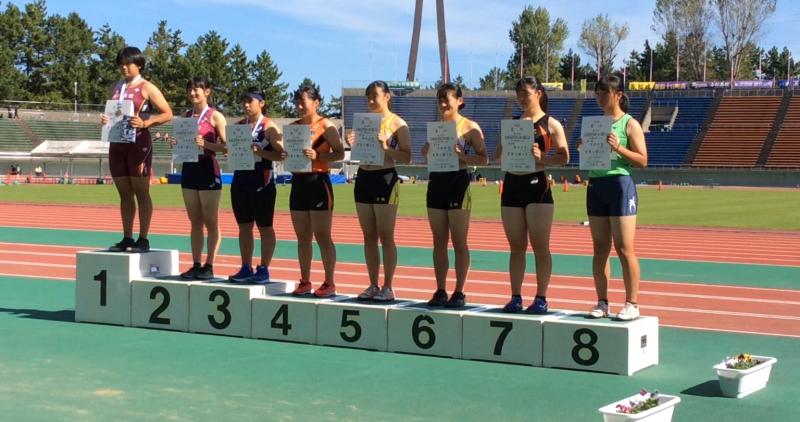 【女子砲丸投の表彰式です。以外と体幹がしっかりしていてバランス感覚もバッグンです 千夏さんおめでとう】
