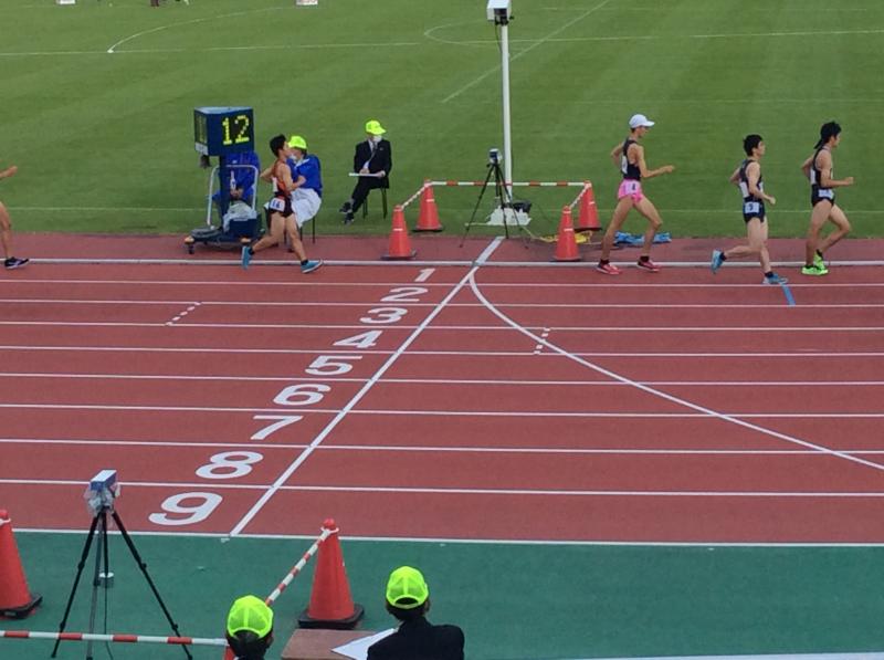 [男子5000m競歩決勝 嶋倉秀斗君の力歩です。後12周もあるの…… スタートは勢いがありました。]