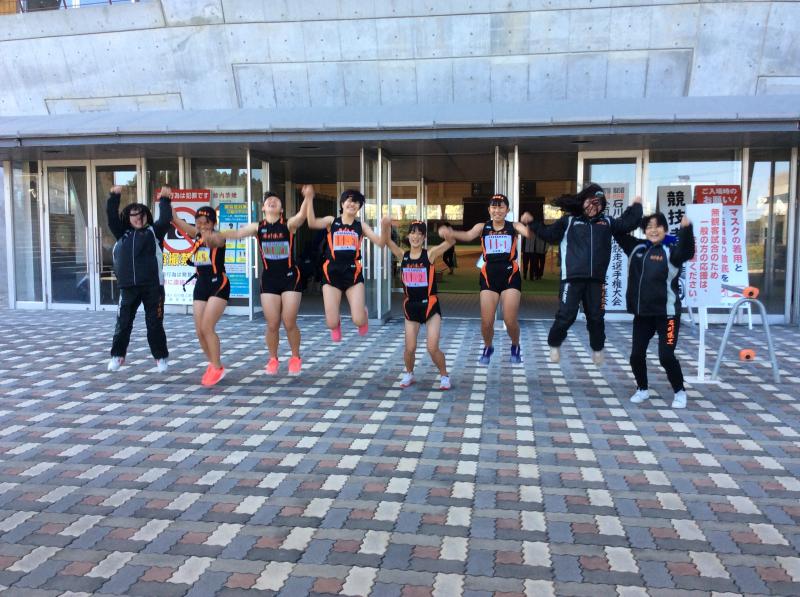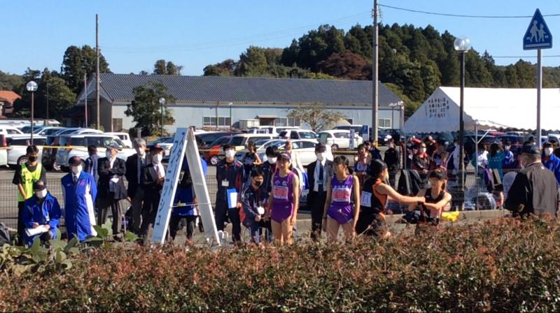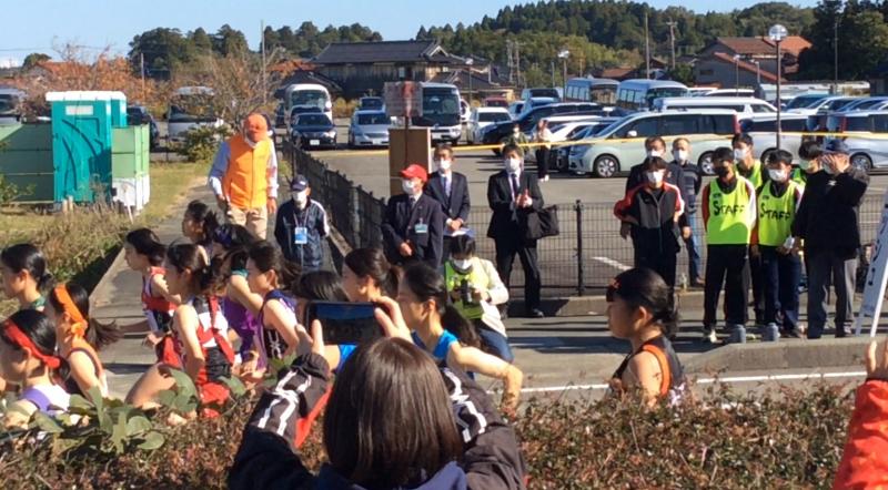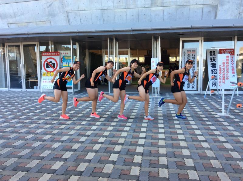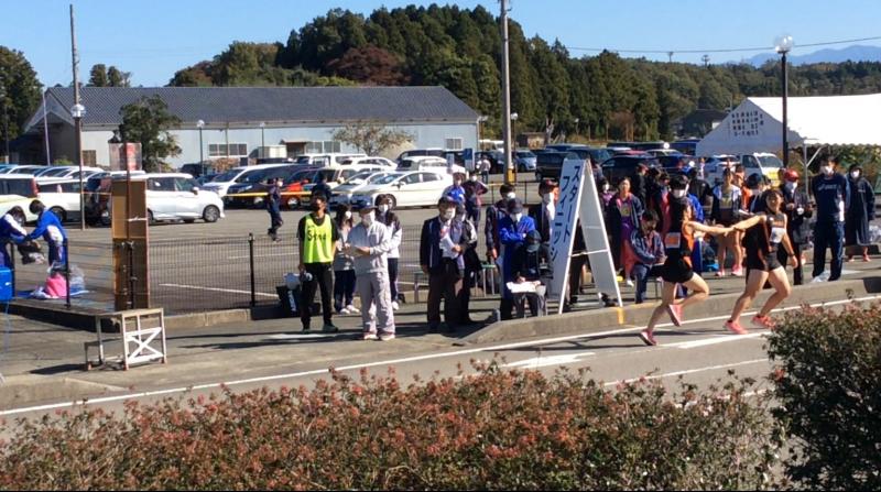 2021 第33回全国高等学校女子駅伝競走石川県予選会が11月7日(日)13チーム参加で行われました。快晴に恵まれ本校から参加した選手5名、マネージャー3名 計8名は一丸となり心の襷を繋ぎ1時間42分20秒で完走する事ができました。怪我もなく無事に終えて本当に良かったと思っています。試合は当初の予想よりオーダーを大幅に入れ替えて4区終了時点でトップと15分以内を目標にスタートを切りました。1区は平下姫菜(1年)6㎞を26分42秒区間11位 2区池田花(2年)は4㎞18分58秒区間12位 3区岩本小華(2年)は3㎞14分40秒区間13位 4区深沢千夏(2年)は3㎞14分49秒区間12位 アンカーの松本瑞姫(2年)は5㎞を27分11秒区間13位各選手とも暑さのため個々の区間目標記録の達成はならなかったもののタスキも最後までつなぎ完走できたことに安堵の表情を浮かべながら選手マネージャーを含め全員がやり遂げた達成感にいつまでも浸っていました。応援に駆けつけてくれた校長先生をはじめお子様の送迎に協力していただいた保護者の方々本当にありがとうございました。監督の感想は準備不足で完走できるかどうか心配でした。ただ生徒の参加したいという思いが強くエントリーしましたがゴール後、完走して喜んでいる生徒を目のあたりにして参加させて良かったことを実感して喜びを感じました。襷も全区間繋ぐ事ができて良かったです。ご苦労さまでした