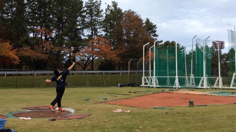 【投擲陣は新羽知輝 砲丸投 グライド投法は未熟ですが意欲的に練習に参加していました。飛距離は11m?】