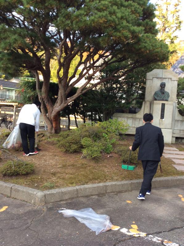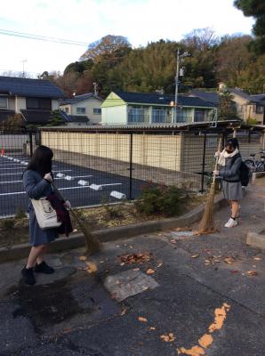 11月16日(火)、2年生が修学旅行に行っている間に1年生が学校の落ち葉拾いを行いました。学校の校門前