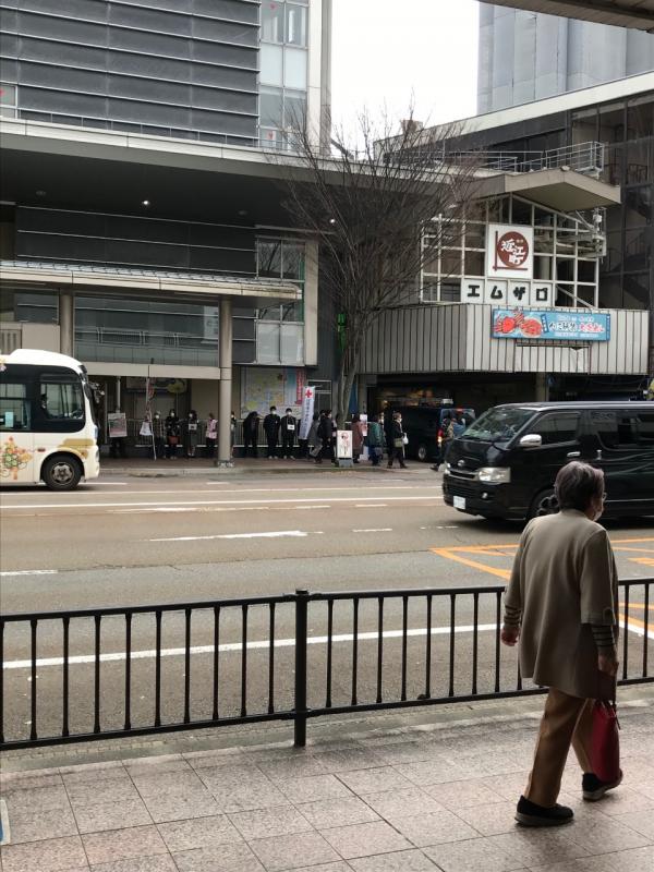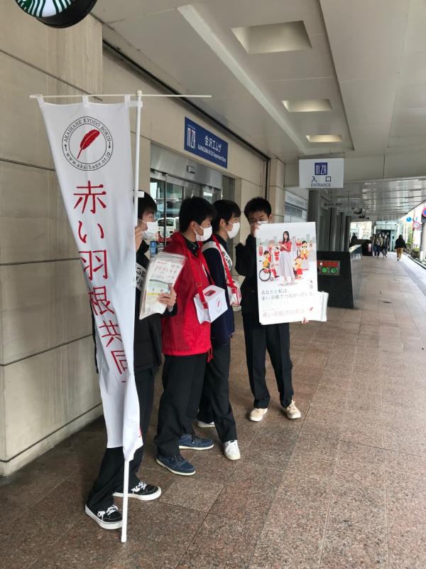 2年生男子は、金沢市社会福祉協議会主催の「赤い羽共同募金」の募金活動に参加。