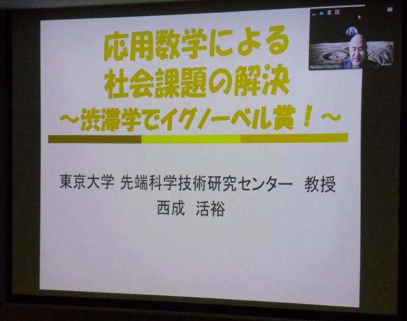 開会の様子 (右側の画面はリモートで参加する1年生)