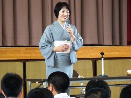 7月3日「県工・人間力育成講演会」を実施し、全校生徒・教職員に加え保護者も15名が聞き入りました。講師は白駒 妃登美(しらこま ひとみ)さん。演題は「歴史が教えてくれる日本人の生き方」。白駒さんは、幼い頃より伝記や歴史の本を読んで育ち、結婚、出産後大病を患い「今を受け入れ最善を尽くして平然と生きる」覚悟を決めました。その後奇跡的に快復し日本の歴史や文化の素晴らしさを内外に広める活動を行っています。講演では地元にゆかりの豪姫、八田與一、鈴木大拙らを登場させ、働くことの意味、志を持つことの尊さ、見えない所まで魂を込めるのが日本のものづくりと語り、県工生には世界に対して日本を発信する役割があると締めくくりました。