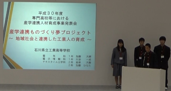 10月13日(土)、石川県産業展示館 2号館にて行われました「いしかわ産業教育フェア2018」において、専門高校等における産学連携人材育成事業における本校の取組を紹介しました。