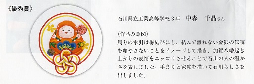 本校からは、3年デザイン科 中森千晶さん が、ポスターとシンボルマークの2部門で優秀賞に選ばれ、表彰を受けました。